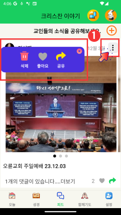 모두성경의 피드탭에 대한 기능 설명에 대한 내용입니다.