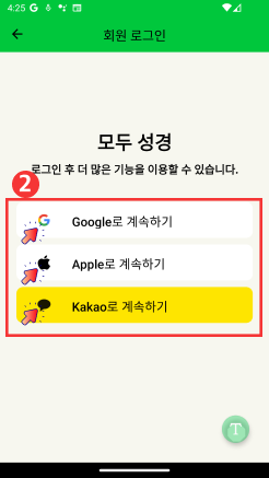 다만, 더 많은 기능을 사용하시길 원하신다면 제공되는 로그인 방법(구글, 애플, 카카오)을 통해서