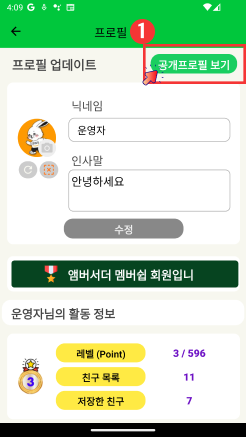 : 터치하시면 다른 사람에게 노출되는 공개프로필 화면으로 이동합니다.