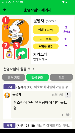 * 말씀 공유글에 좋아요 +2